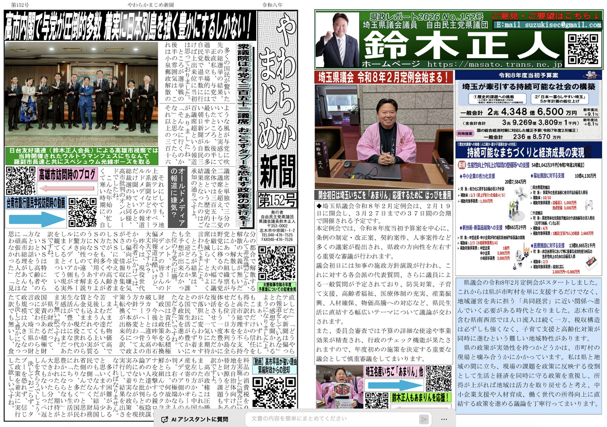 県政レポート / やわらかまじめ新聞 152号 |